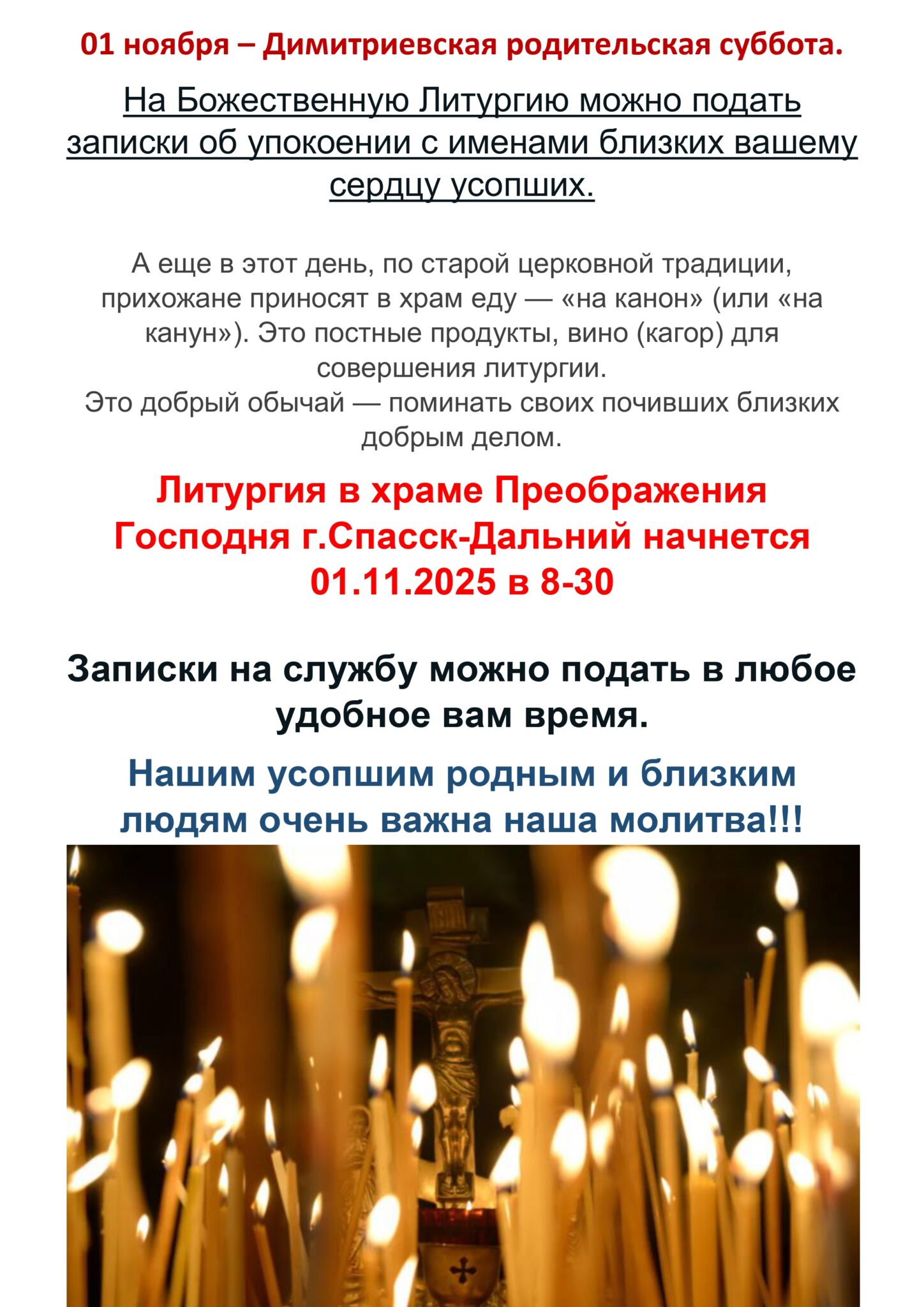 Объявление. Димитриевская родительская суббота Опубликовано 25.10.2025 Татьяна (1) Поделиться:TwitterВКонтактеОдноклассникиGoogle